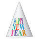 Fügen Sie Ihrem Party im Neujahr eine einzigartige Touch und Farbe mit diesen coolen Party-Hüten hinzu und feiern Sie mit Ihrer Familie und Ihren Freunden. Dieses Design zeigt einen farbenfrohen und modernen typografischen Text, der Happy New Year, in Blau, Orange, Grün, Gelb, Fuchsia, Aqua und lila Farben sagt. Koordination von Gegenständen in meinem Geschäft.