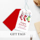 Dieses Design zeichnet sich durch ein individuelles Geschenketikett aus, mit stilvollen rot-grünen, farbenfrohen Strümpfen, einem niedlichen Aquarell-Design, mit Schrift-Typografie-Kalligraphie, einem einfachen minimalistischen, klassischen Klassiker, ideal für Urlaubsgeschenkverpackungen oder Gastgeschenk
