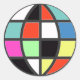 Ein grafisches Design der Welt mit farbigen Quadraten in einer schwarzen Spur