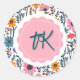 Helle fröhliche und farbenfrohe rosa, Lila, blau und orange Whimsical Folk Art Blume mit Monogramm Aufkleber.