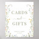 Elegantes, rustikales Hochzeitskarten- & Geschenktafelzeichen mit farbenprächtigen Kranz aus Wildblume, verwoben mit grünen Blätter und Wiesen-Blume. Ideal für klassische Frühjahr/Sommer Hochzeitsfeiern.