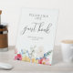Farbenfrohe Wildblume Hochzeitsbuchtisch Sockelschild