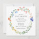 Feiern Sie die Mutter zu sein! Diese farbenfrohe Babydusche lädt mit einem Aquarellkranz in der Wildblume ein. Personalisieren Sie Ihre Daten oder klicken Sie auf "Weitere Anpassungen vornehmen", um Schriftart Stile, Größe und Farben zu bearbeiten.