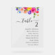 Elegante, farbenfrohe Wildblumen mit Sitzkarten mit schönen Blume und Blätter. Mit diesem farbenfrohen, bunten, hellen Wildblumen Hochzeitstisch mit Acrylzeichen führen Sie Ihre Gäste stilvoll an. Das Hotel besticht durch eine lebhafte Auswahl an rosa, gelben, orangefarbenen und lila Wildblumen. Freuen Sie sich auf eine lebhafte und romantische Touch in Ihrem Hochzeitsdekor. Das moderne Acrylmaterial verleiht ein elegantes und modernes Ambiente, während die elegante Typografie Klarheit und Eleganz schafft. Dieses hübsche Plakatzeichen, das sich perfekt für Hochzeiten im Garten, im Boho oder im Freien eignet, verbindet wunderbaren Charme mit moderner Eleganz und hilft den Gästen, mühelos Platz zu finden und gleichzeitig die Ästhetik Ihrer Veranstaltung zu verbessern.