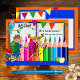 Eine fröhliche Postkarte mit glücklichen Kindern, deren Rucksäcke wieder in die Schule gehen. Auf der Rückseite dieser Postkarte befinden sich mehrere rechteckige Vorlagen. Sie können sie nach Belieben anpassen oder löschen.