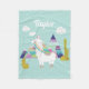 Frische und farbenfrohe Fleecedecke mit bezaubernden Illustrationen eines Alpacas mit bunten Pyramiden, Wolken und Sukkulenten. Diese individuell anpassbare Decke ist als personalisiertes Geschenk perfekt.
