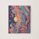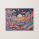 Farbenfrohe Zauberwelt mit Mond und Regenbogen Puzzle