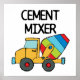 Ein farbenfroher Zementmischer aus blau, rot, grün und gelb und Text, der "Zementmischer" auf T - Shirt, Bikes, Körperanzügen, Totensäcken, Magneten und anderen Gegenständen liest, die sich besonders gut für Kinder eignen, die große Baufahrzeuge mögen.