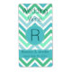 Fügen Sie bei Ihrer Hochzeit Ihren eigenen Aufkleber zu diesen Mini- oder Champagnerflaschen mit diesem Zickzack, stilvollen, individuellen, aquamarinen, blauen, minzgrünen, türkisfarbenen und weißen Etikett. Ein türkisfarbenes Band unten und ein türkisfarbener Kreis in der Mitte hat einen Single, der ein Monogramm mit einem Buchstaben und ein Text im unteren Band aquamarin. Personalisieren Sie den aquamarinen Text und das Monogramm für Ihren besonderen Tag.