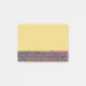 Sticke Noten mit goldbraunem Hintergrund und einem unteren Rand mit einer einzigartigen bunten Ziegelwand Textur in einem Regenbogen von Farben. Einige der Ziegelsteine sind zufällig rosa, babyblau, rot und grün gestrichen.