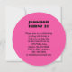 Dieses lustige Round Einladungs-Design ist perfekt für eine 21. Geburtstagsfeier. Das Design ist mit einer Zitrusfruchtspalte-Grafik mit einer lebhaften rosa Zitrone verziert, die sich mit den Mustern meiner farbenfrohen Zitrusspalte abstimmt. Der Text kann leicht für eine Geburtstagsparty oder jede Veranstaltung bearbeitet werden.