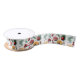 Satin Ribbon mit einem niedlichen Design mit roten und orangefarbenen Christuskeksen und Obstmustern auf weißem Hintergrund. Cool für Weihnachtsgeschenke oder andere besondere Anlässe im Winter.