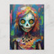 Farbenfrohe Zombie-Puppe mit roten Augen Postkarte