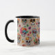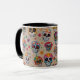 Ein lebendiges Muster mit bunten Zuckerschädeln und Blume, perfekt für die Feier des Toten mit lebendigem Stil