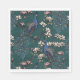Diese farbenfrohen Papierservietten aus dem Hause Blue Peacock und Magnolia Aquamarin Napkins sind mit handgezeichnet blauen und aquamarinen Pfauen versehen, die an den Ästen der Magnolia-Bäume in schwarzer Tinte in voller Blüte stehen. Eleganter aquamariner grüner Hintergrund.
