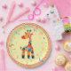 Farbenfroher Cartoon Giraffe mit Confetti Pappteller