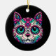 Farbenfroher Cat Sugar Skull Keramik Ornament