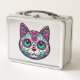 Farbenfroher Cat Sugar Skull Metall Brotdose