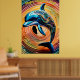 Dieses farbenfrohe digitale Kunstwerk eines Delfins wünscht Ihnen einen schönen Valentinstag in allen Regenbogenfarben.