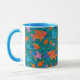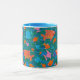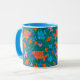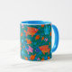 Eine unterhaltsame Ringer-Tasse aus der Weißen Keramik, mit einem Bright Blue Lip und Handle und farbenfrohen Fischen, die auf dem Ozean schwimmen, aus einer skurrilen, handbemalten Papierkollektion von Judy Adamson. Als Teil der Posh und Painterly 'Fish in the Sea' Kollektion kann dieses Muster an jede Tasse angepasst werden.