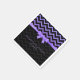Mit Monogramm, farbenfroher Glitzer in Blau und lila Tönen mit schwarzem Zickzack.