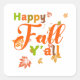 Farbenfroher glücklicher Fall Y'all mit Herbstblät Quadratischer Aufkleber
