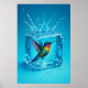 Farbenfroher Hummingbird Inside Ice Cube Nebel Bla Poster