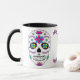 Dieser einzigartige Tag des Toten Designs fasst die wichtigsten Aspekte dieser mexikanischen Feier zusammen. Ein Zuckerschädel ist eine Tradition, die in den Feierlichkeiten zum Toten Tag, die von Ende Oktober bis Anfang November beginnen, eine herausragende Rolle spielt. Dieses farbenprächtige Design ist einfach auffällig und die Tasse kann personalisiert werden, indem Sie Ihren eigenen Namen oder Text hinzufügen.
