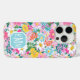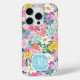 Passen Sie diese wunderschöne moderne farbenfrohe Blumengarten aus Blumen in rosa, blau, orange, gelb und weiß iPhone 15 Pro-Hülle mit Ihren Initialen in einer modernen CAP-Schrift in weiß auf blau an. Es ist so lebendig und fröhlich!