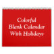 Farbenfroher roter Blankkalender mit Ferien Kalender