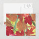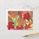 Auf Postkarten wird ein farbenfrohes Gemälde von Herbstblättern auf abstraktem pastellfarbenem Hintergrund gedruckt.