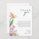 Dieser farbenfrohe tropische Empfang Dankeschön-Karte ist perfekt für Ihre moderne boho Ziel, grün, lila, peach Hochzeit. Das Design besticht durch ein elegantes Bouquet mit klassischem Aquarell und Blume, zu denen u.a. Salbeigrün Eukalyptus, Lila und Rot Protea, rot-rosa Hibiskus, Orange und Blau des Paradieses und dunkelgrüne Palmenblätter zählen. Das Design ist ideal für eine einfache, kreative, einzigartige Reise Hochzeit für Frühling, Sommer, Herbst oder Winter! In der Erholung der Sammlung finden Sie weitere passende oder koordinierende Hochzeitsstätten.