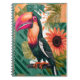 Ein farbenprächtiger Tukan, umgeben von üppigen Blättern und einer leuchtenden Sonnenblume. Das Bild kombiniert tropische Elemente mit dynamischen Mustern, die eine wilde, lebendige Atmosphäre schaffen. Es ruft ein Gefühl von Abenteuer hervor.