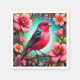 Ein lebendiger Vogel mit bunten Federn sitzt auf einem Ast zwischen exquisit detaillierten rosa Blüten.