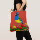 Farbenfroher Vogel unter lebhaften Blume