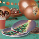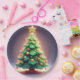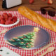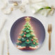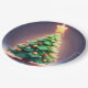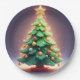 Farbenfroher Weihnachtsbaum mit Lichtern dekoriert Pappteller