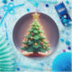 Der helle Weihnachtsbaum ist mit bunten Ornamenten, warmen Lichtern und einem strahlenden Stern dekoriert, der festliche Feiertagsstimmung und saisonale Wärme in einer winterlichen nächtlichen Umgebung weckt.
