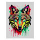 Farbenfrohe Wolfenkopf Zeichnend - Wolf Poster drucken - Wölfe