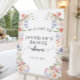 Begrüßen Sie Ihre Gäste in elegantem, modernem Stil mit diesem charmanten botanischen floralen Hochzeitsdusche-Willkommensschild, gedruckt auf einem Poster. Es zeigt einen exquisiten Blumenkranz, der mit farbenfrohen Wildblumen und grünen Blättern verflochten ist. Dieses Schild fügt einen Hauch von zarter Eleganz Ihrem Eingang zur Brautfeier hinzu.