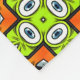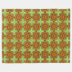 Farbenfrohes geometrisches Mandala-Muster in Orange, Grün und Blau, das an einer Stange hängt und flach auf einer Oberfläche liegt und die Textur zeigt.
