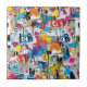 Farbenfrohe urbane Graffiti-Patchwork-Fliesen mit kühnen abstrakten Blöcken, ausdrucksstarken Pinselstrichen, Kritzeleien, Sternen und Mixed-Media-Texturen in hellblau, gelb, pink, orange und schwarz. Energetisch und kantig mit einer modernen Street-Art-Ästhetik ist dieses nahtlose Design ideal für Graffiti-Kunstliebhaber, Maximalismus-Fans, kreative Teenager und zeitgenössische Kunstliebhaber.