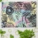 Farbenfrohes urbanes Graffiti-Patchwork-Kuchentuch mit kühnen abstrakten Blöcken, ausdrucksstarken Pinselstrichen, Kritzeleien, Sternen und Mixed-Media-Texturen in hellblau, gelb, pink, orange und schwarz. Energetisch und kantig mit einer modernen Street-Art-Ästhetik, ist dieses nahtlose Design ideal für Graffiti-Kunstliebhaber, Maximalisten, kreative Teenager und zeitgenössische Kunstliebhaber.