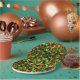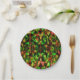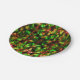 Farbengrün, gelb bis rot mit Federn. Pappteller