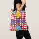 Die Blumengrafik auf den roten Gitterlinien sorgt für ein niedliches und stilvolles Design der Tote-Tasche. Man kann es als Reisetasche oder als tägliche Tasche benutzen, oder man kann es auch als eine der Sachen zum Strand tragen.