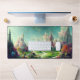 Coole, farbenprächtige, faszinierende Panoramalandschaft mit bunten Bäumen und einem Blume-Garten mit Fantasy-Schlössern im Hintergrund. Individuell anpassbare optionale Monogramm.