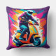 Eine lebendige Kunstillustrierung, die ein Individuum auf einem orangefarbenen Roller zeigt, umgeben von dynamischen Splash von lebhaften Farben und Bewegung. Erfasst Energie, Kreativität und moderne Lifestyle-Themen.