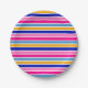 Farbenfrohe Stripe Muster Vivid Party Paper Teller. Modernes, lebhaftes, helles Design mit blauen, gelben und rosa Streifen. Ideal für einen Geburtstag für Groß und Klein, Picknick, Osterfest, Party...