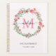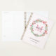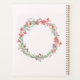 Dieser personalisierte, schicke, rosa Planer verfügt über einen Aquarellkranz mit rosa und violetten Blumen und grünen Blätter. Personalisieren Sie Ihre persönlichen Daten. Wenn Sie Ihren Namen hinzufügen, geben Sie zwischen den beiden Feldern ein.