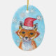 Weihnachtsschmuck mit einem niedlichen Aquarellfuchs mit einer Weihnachtsmannmütze und einem Ort, um eine persönliche Nachricht auf die Rückseite.