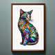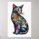 Aquarellfarbene Glaskunstkatze. Das Seitenverhältnis beträgt 2:3. Es wurde für den Druck als 24"x36" konzipiert